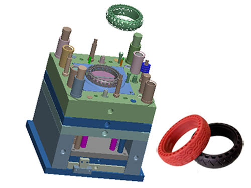 The elastomer TPS has the advantages of high friction coefficient, good wear resistance and good processing performance, good friction adhesion and vibration absorption, and good rigidity and strength depending on the hard central hub. At the same time, the elastic deformation characteristics of TPS and PU elastomers are used to forcibly pull out of the die cavity, thus avoid to make many complicated slider mechanism in the mold.